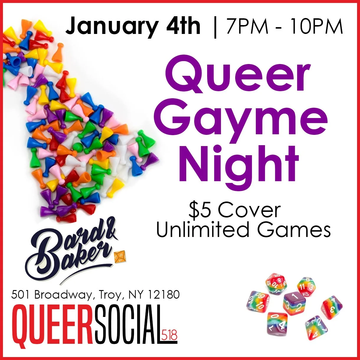 Queer Gayme Night: Join us on January 4th, 2022 at 7:00 PM for an inclusive night of gaming at Bard & Baker in Troy!
