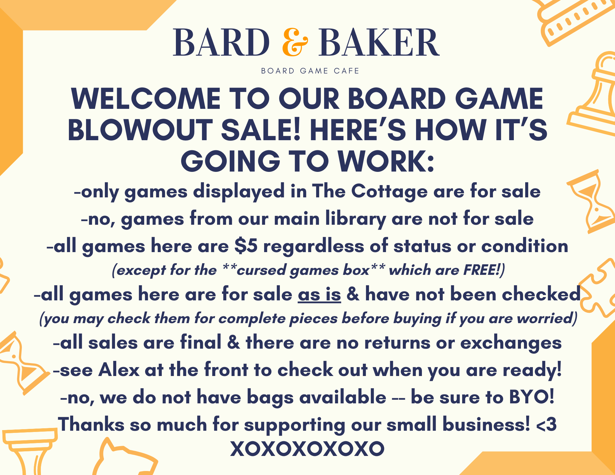 Join us in The Cottage next door at Bard & Baker to browse a massive selection of board games and take home some fun used games to add to your own collection!