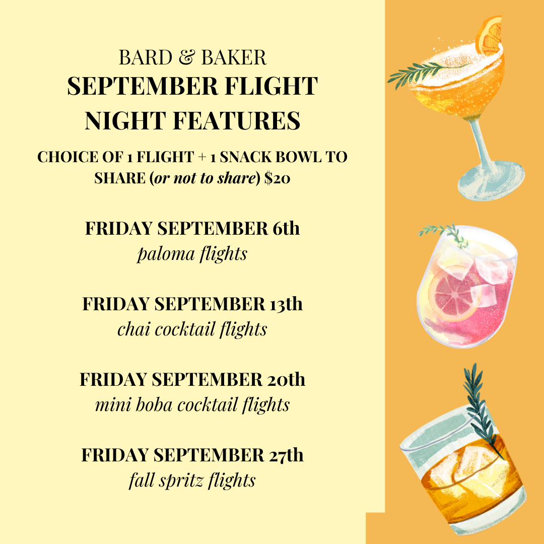 Join us at Bard & Baker for our new weekly promo, Flight Night Fridays!