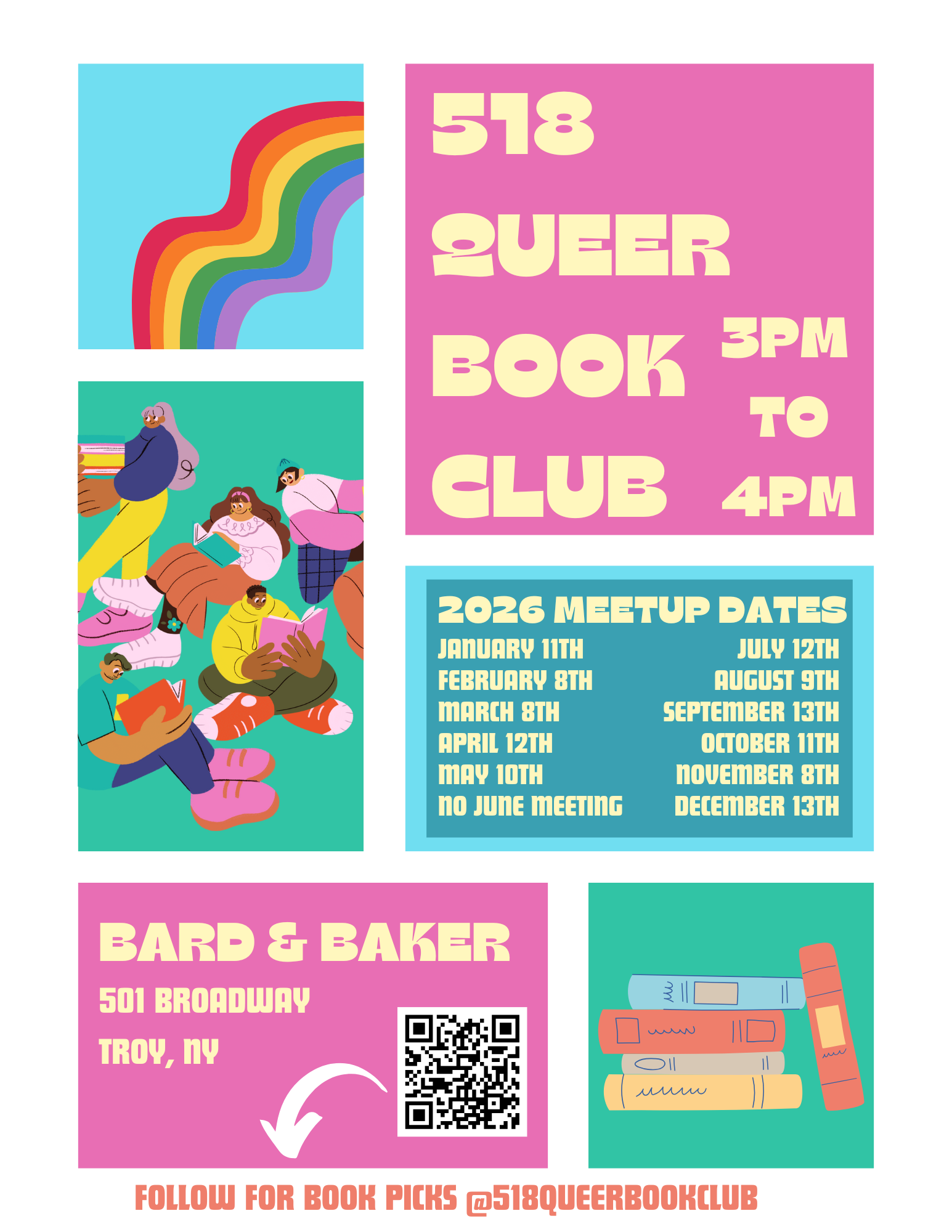 Join us at Bard & Baker throughout 2026 for 518 Queer Book Clubs monthly meeting to discuss the book pick of the month!